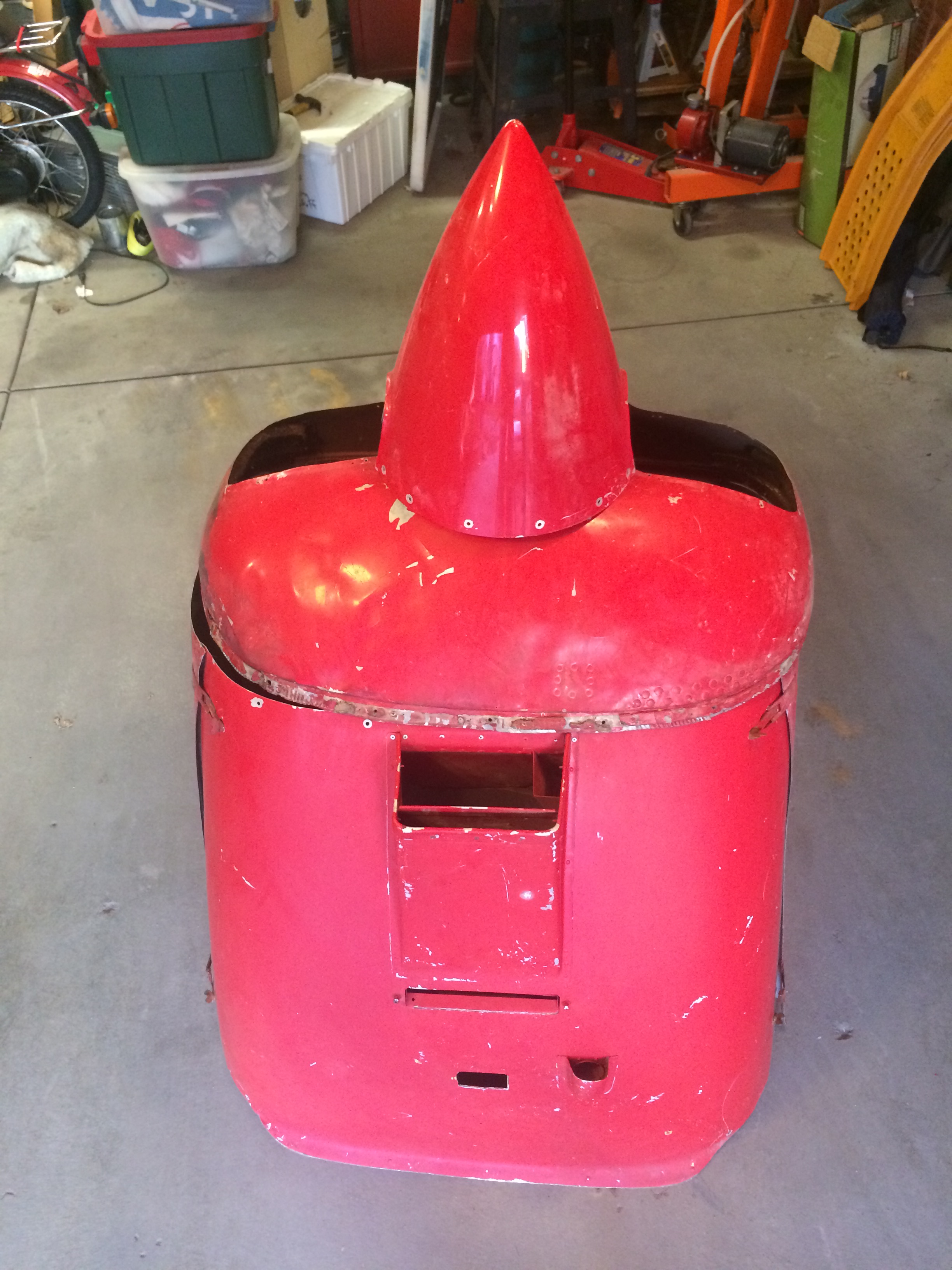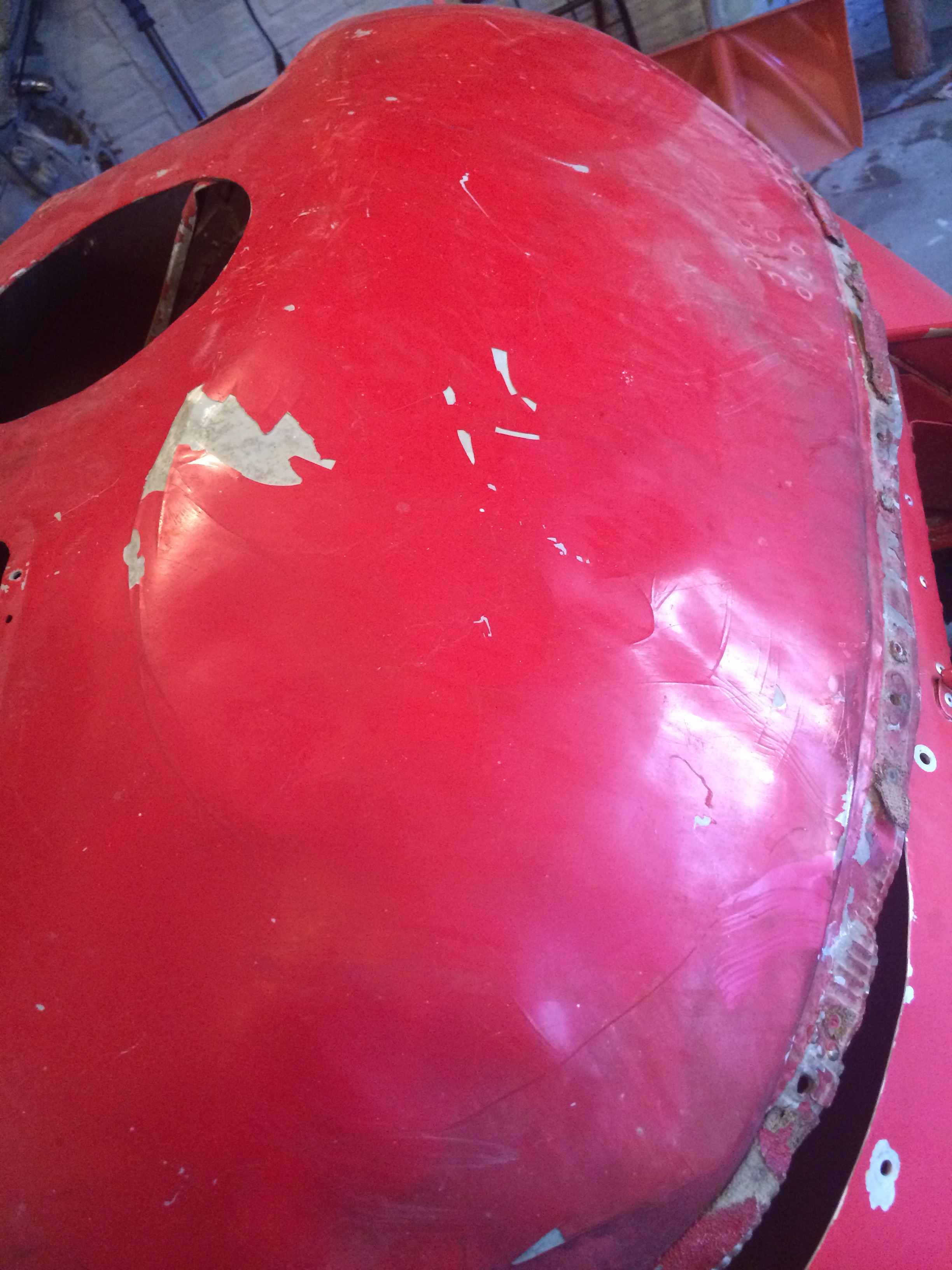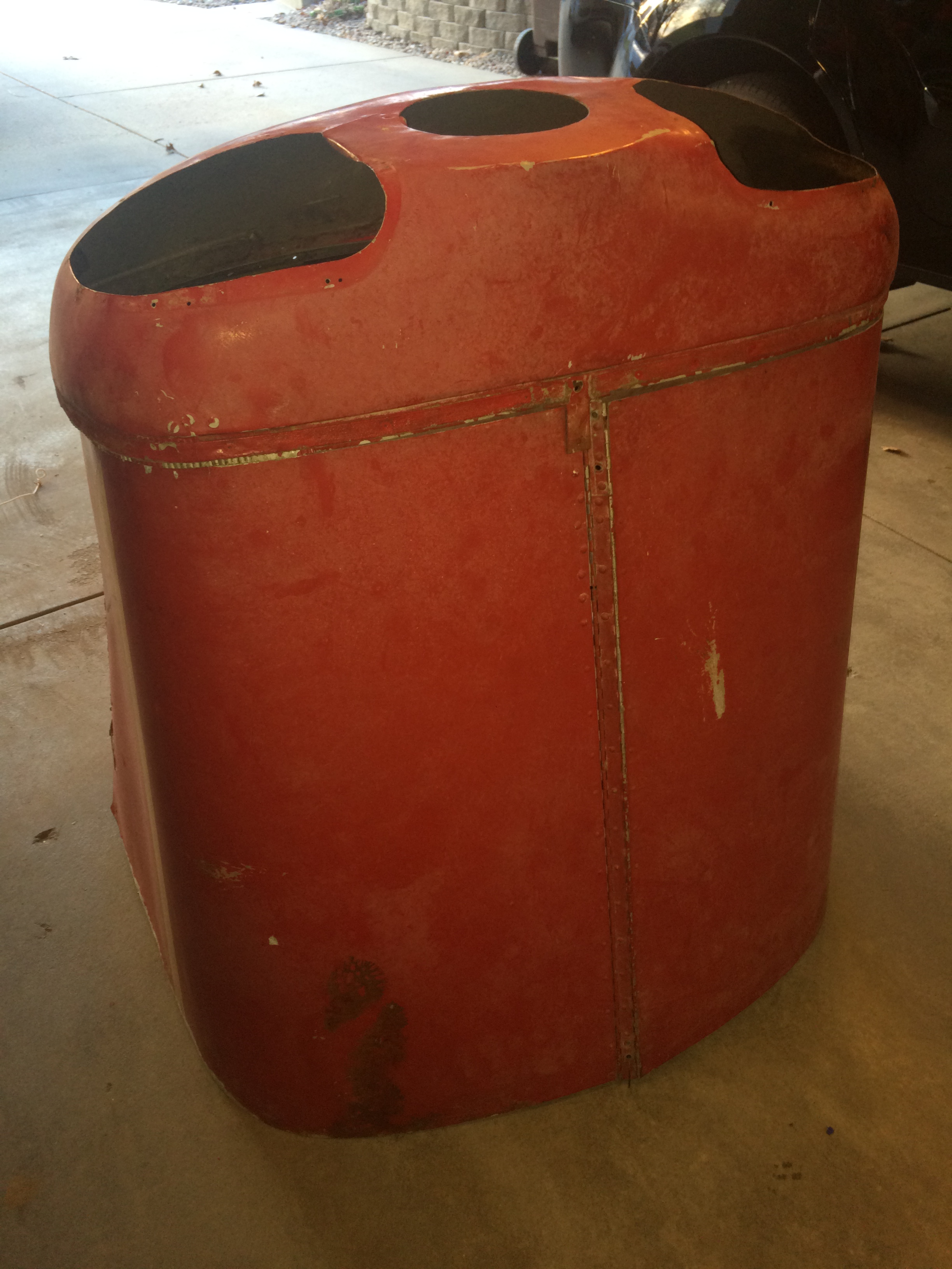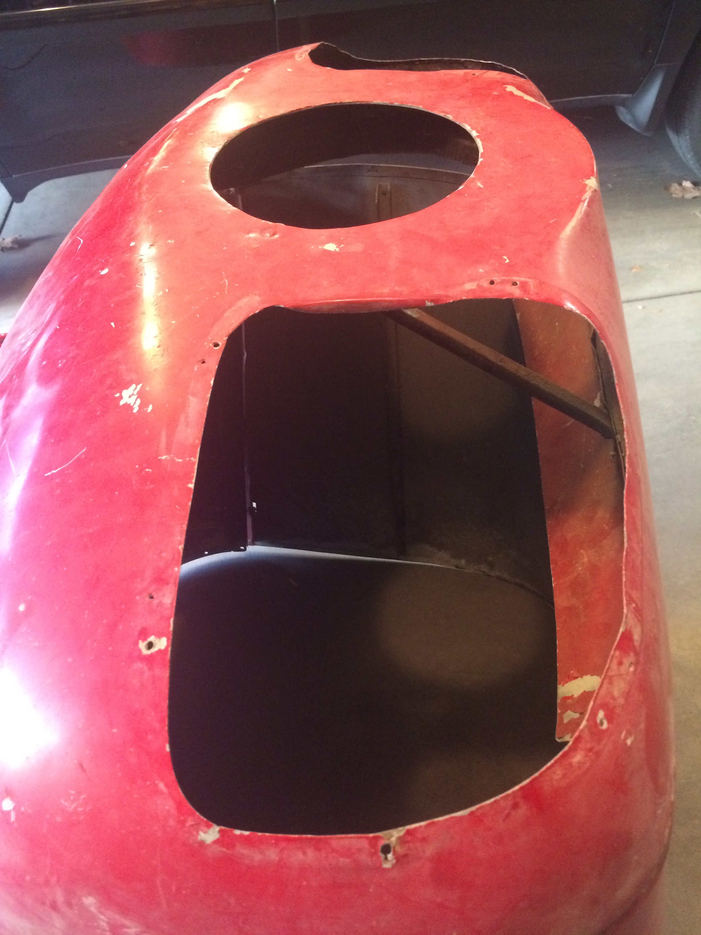 The cowling is in rough shape, too. One hinge point is broken but it’s riveted on so easy to repair. The hinge fasteners are rusty but should work fine once they are cleaned.