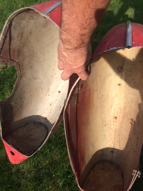 Leave a comment Posted on April 14, 2015 Uncategorized Wheel Pants I power washed the wheel pants, too. The insides look better but there are a lot of dents to remove.