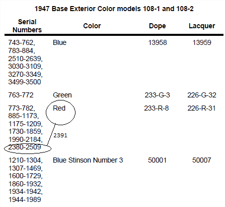I’m not sure why I thought the original color was blue except that was the color on most of the surfaces under the red. I found this on the Stinson website:
