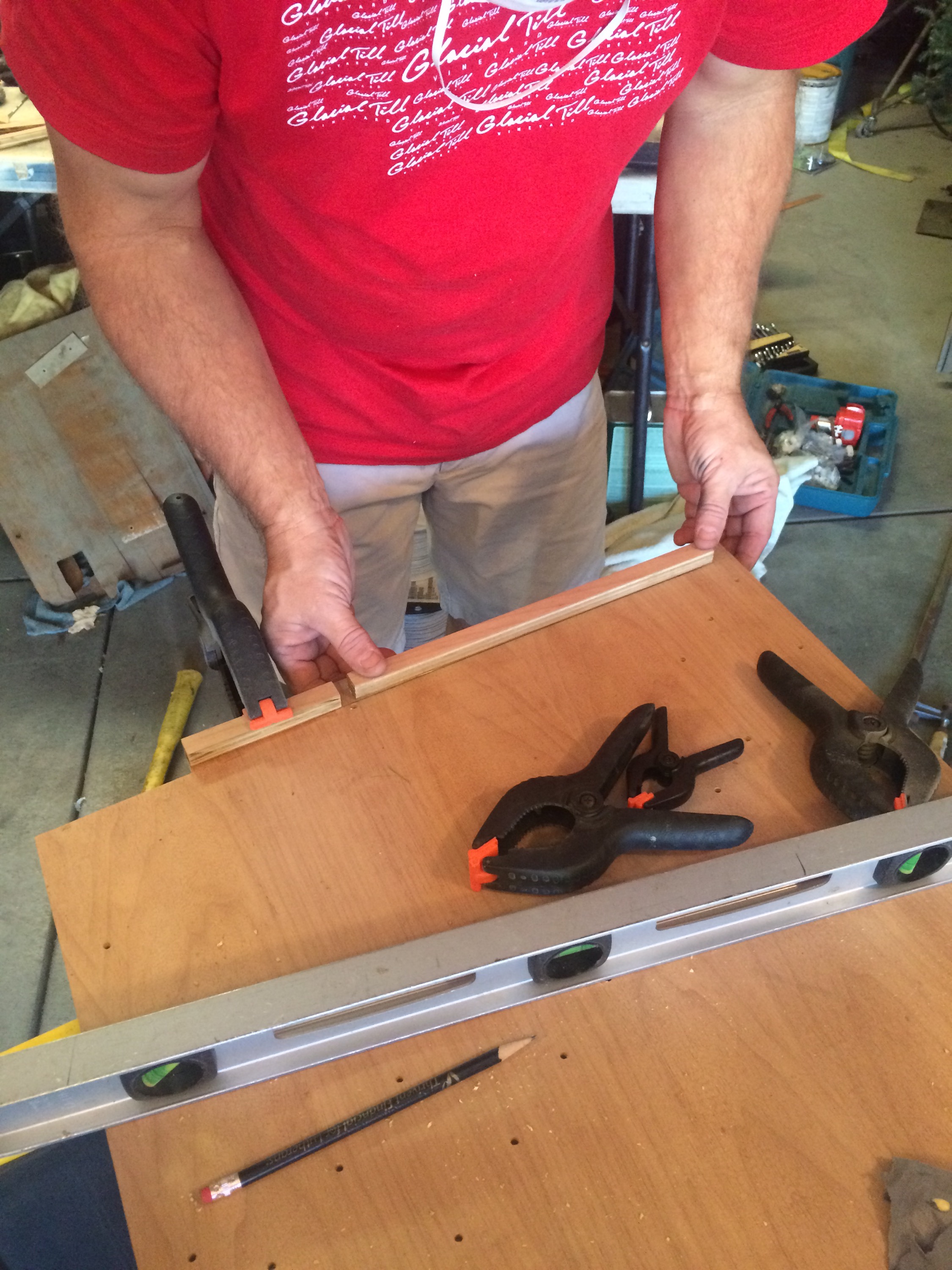 I received the new plywood for the main floor panels. Using the old pieces for a pattern, I cut the new ones. The photos show them installed for fitting before sanding and clear coat is applied.