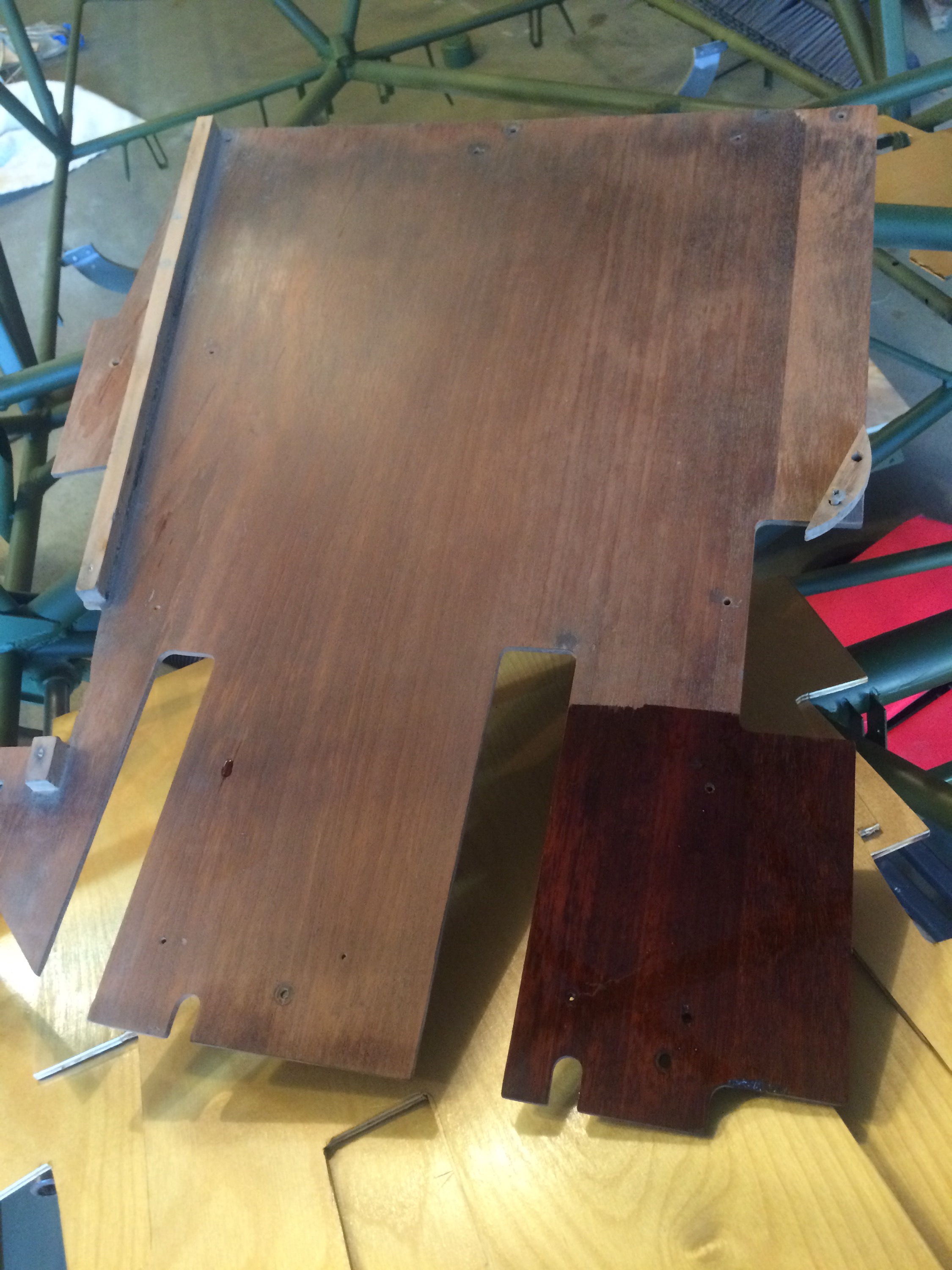 Leave a comment Posted on October 12, 2015 Uncategorized Floor Boards thinking about keeping the front floor boards. I cleaned them up some and they are starting to look good. I will do more sanding before making a decision. Left side not touched. Right side sanded some. A test spot of clear coat.