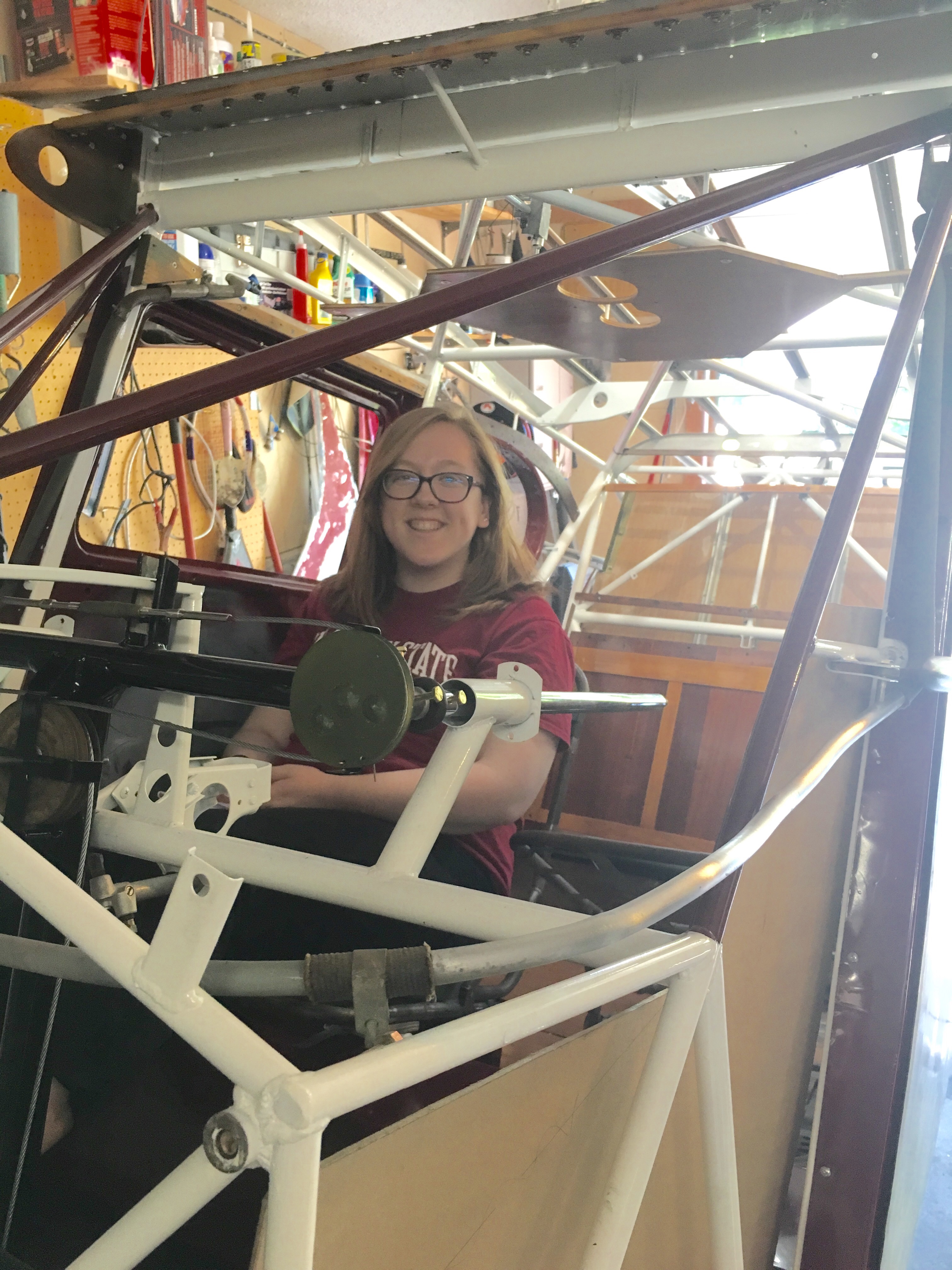 Posted on May 12, 2016 Uncategorized Moving right along. Cutting the right side cabin pieces for the door and the front side piece. Anna Marie got to sit in the copilot seat. Share this: Click to share on Facebook (Opens in new window) Facebook More Click to share on X (Opens in new window) X Like Loading...