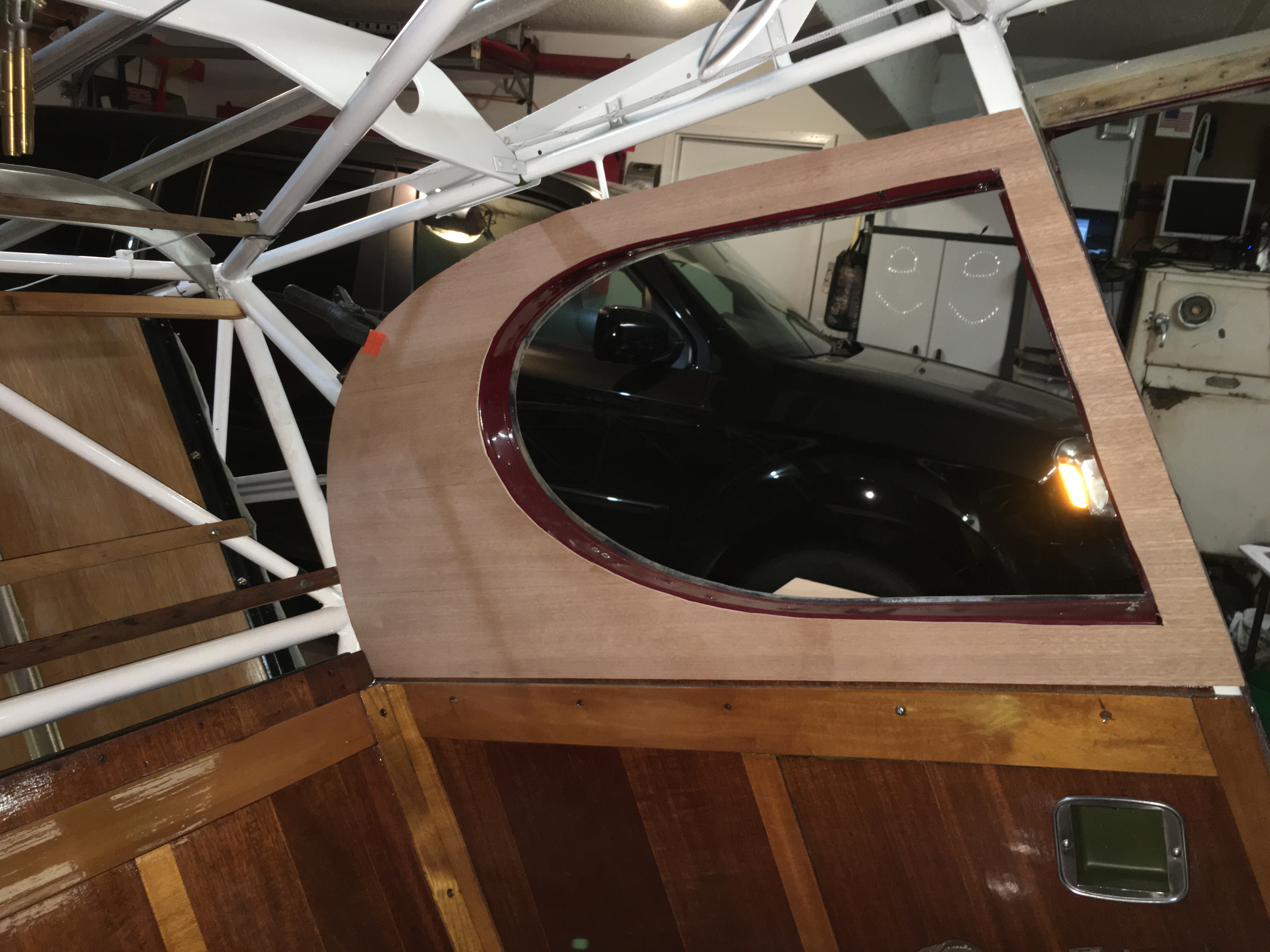 Third one show a coat of clear on the mahogany plywood for the left rear window.