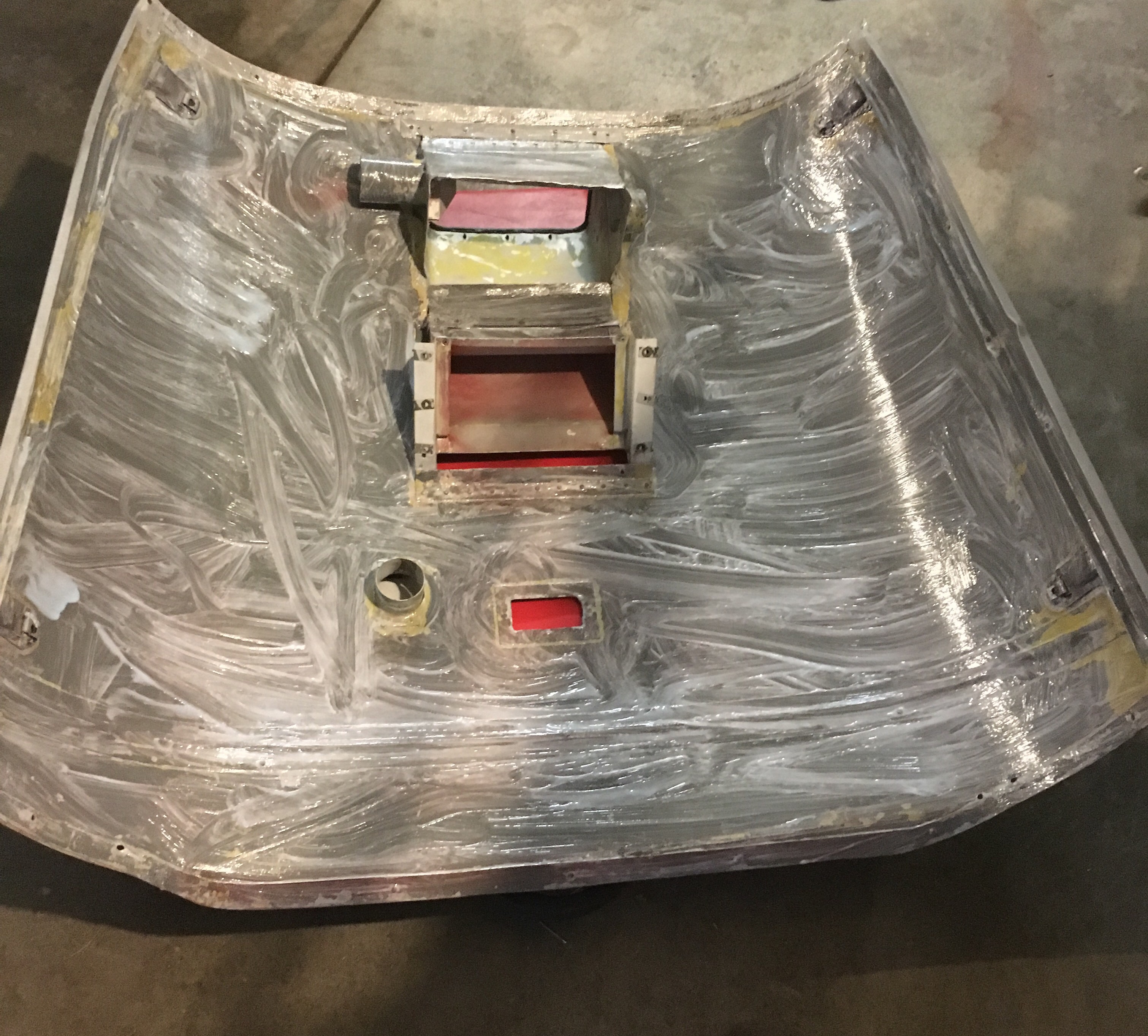 Removing paint from the inside of the cowl. It was coming off easily.