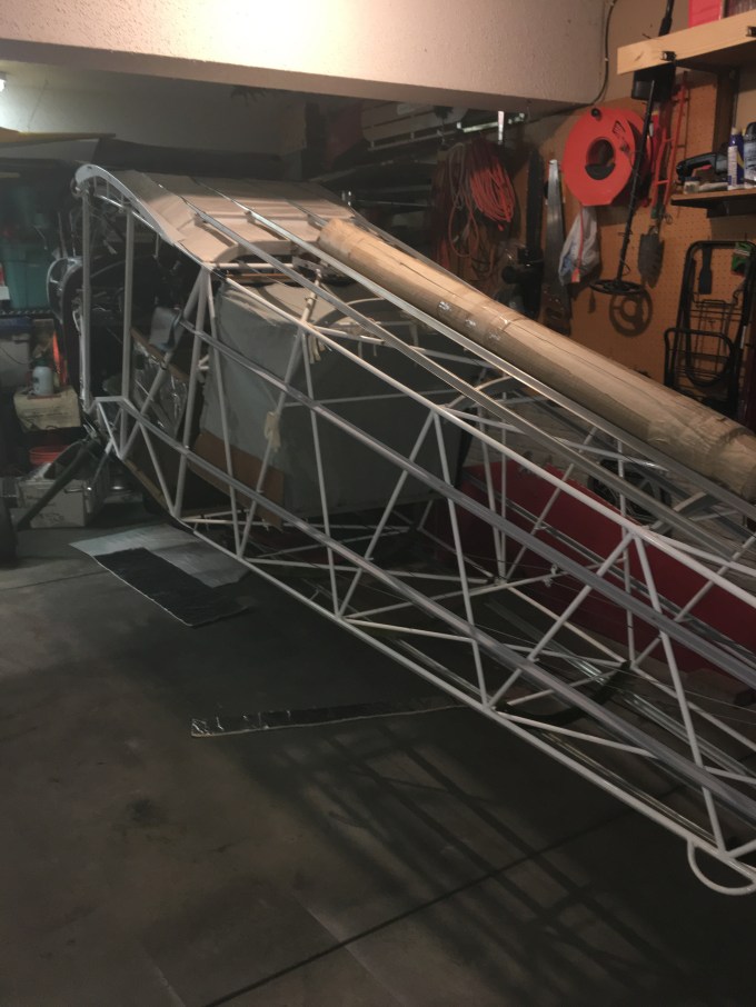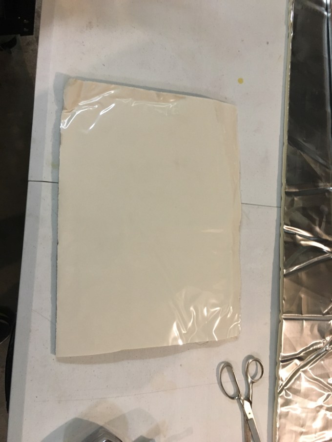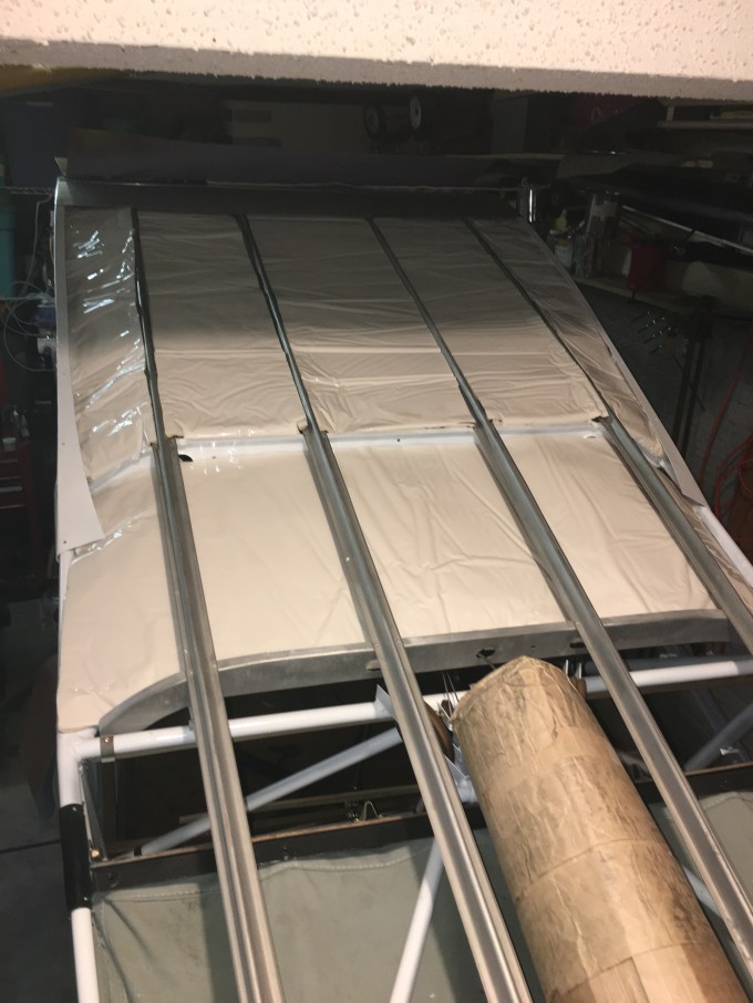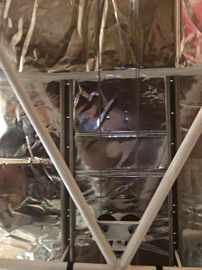 Getting this installed before I can cover the fuselage. It’s silver on the inside and white on the outside. It has a sticky back to attach to where it needs to stick. Fitting it before I do that.