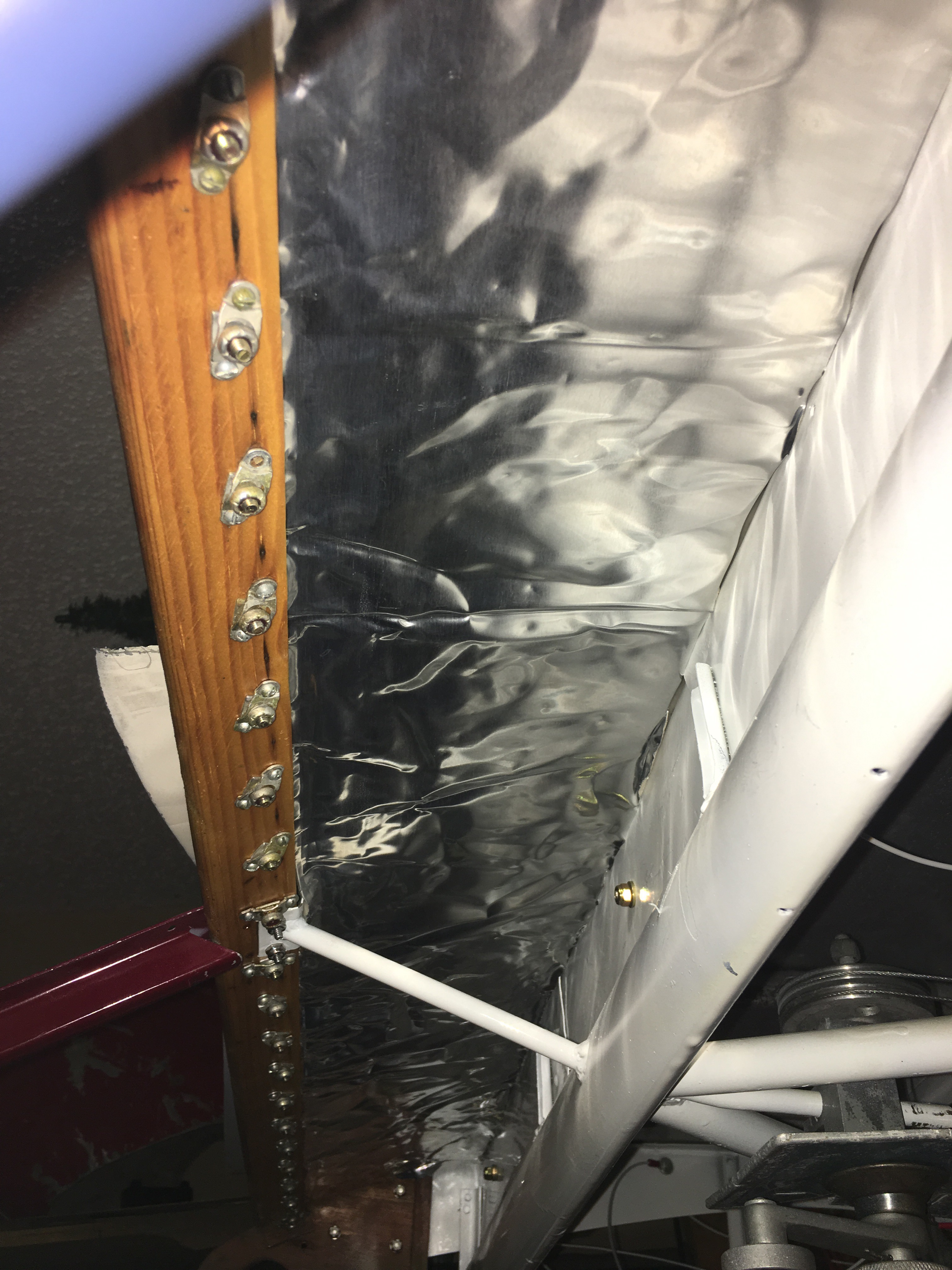 Getting this installed before I can cover the fuselage. It’s silver on the inside and white on the outside. It has a sticky back to attach to where it needs to stick. Fitting it before I do that.