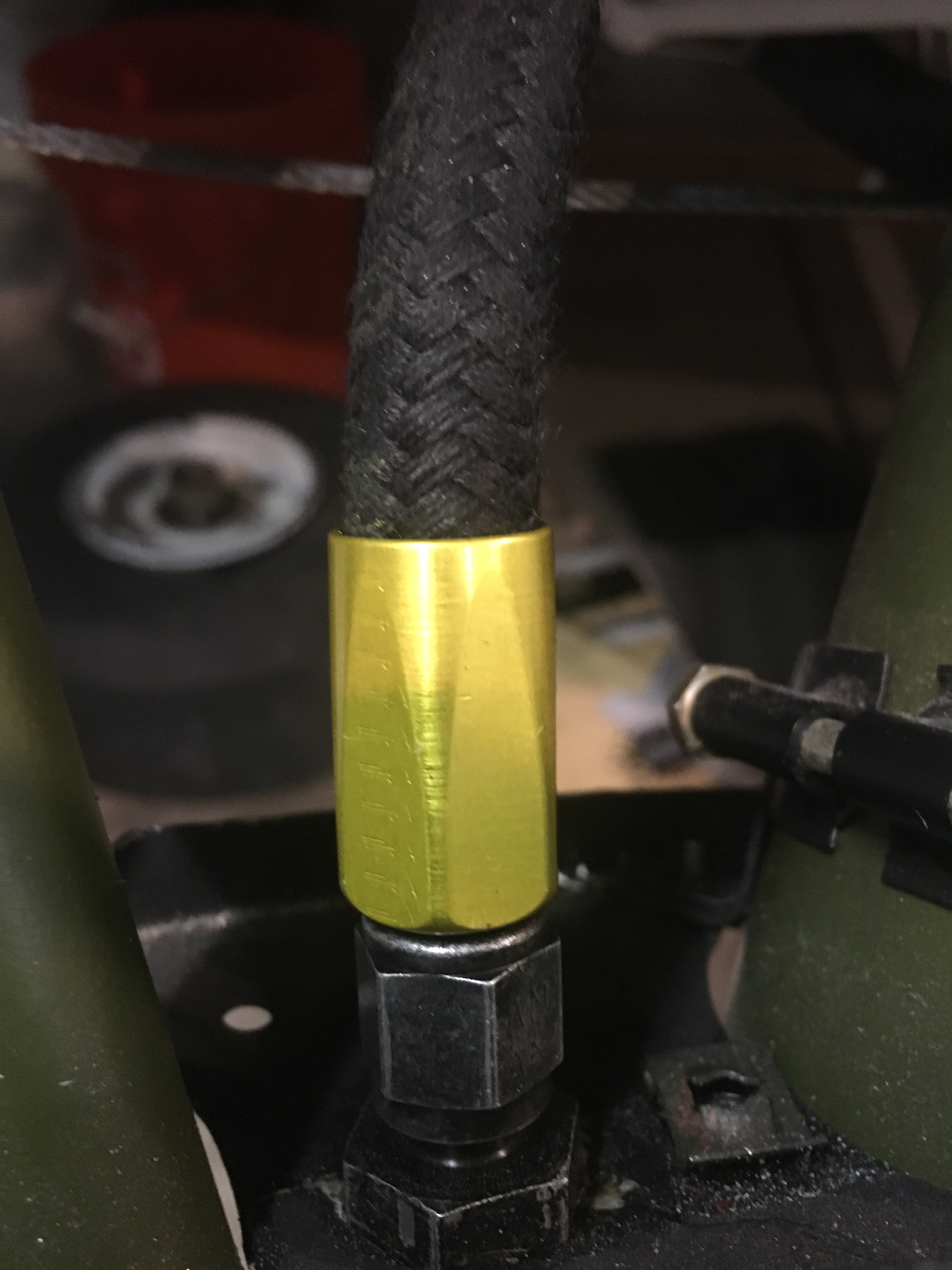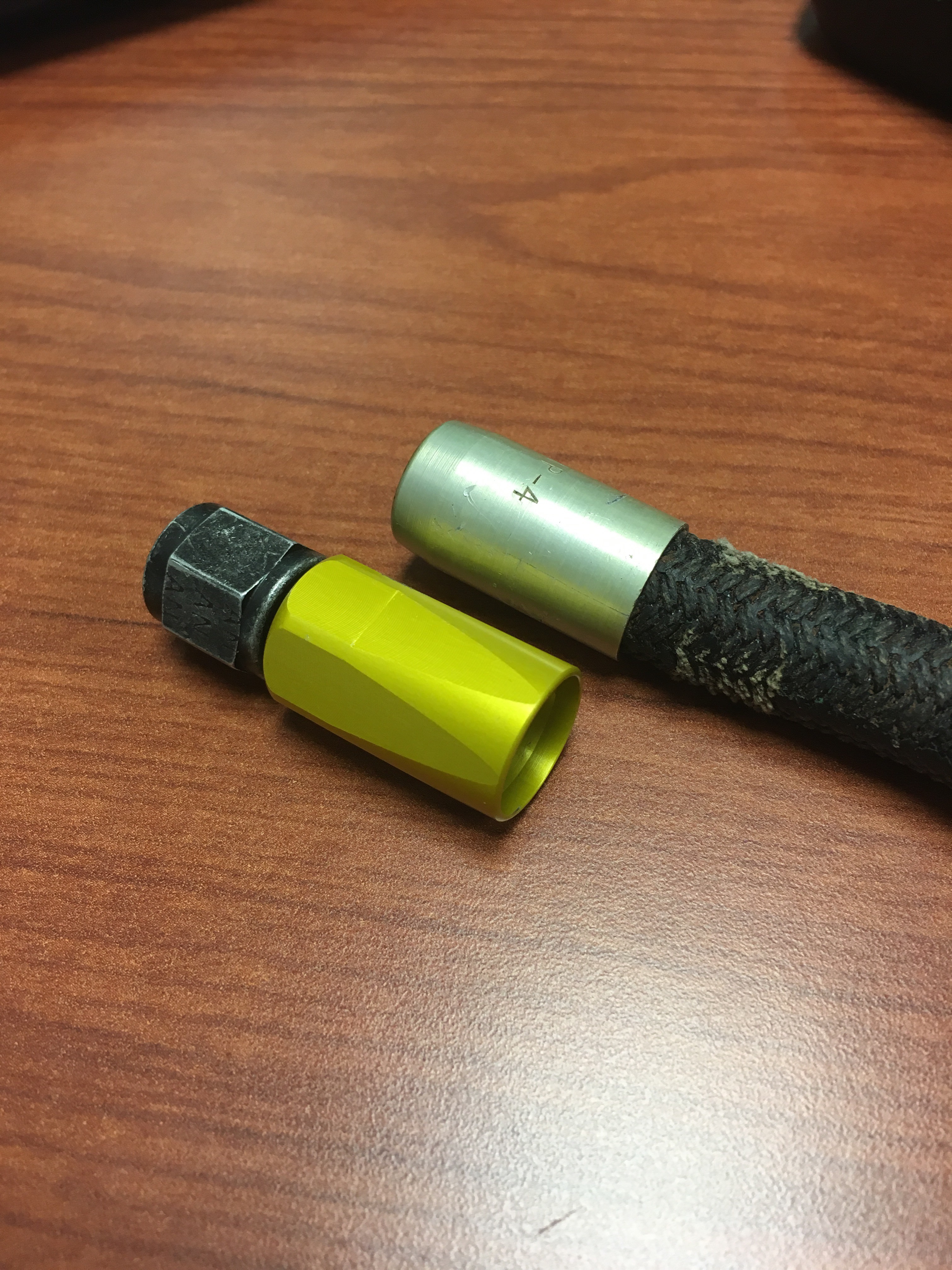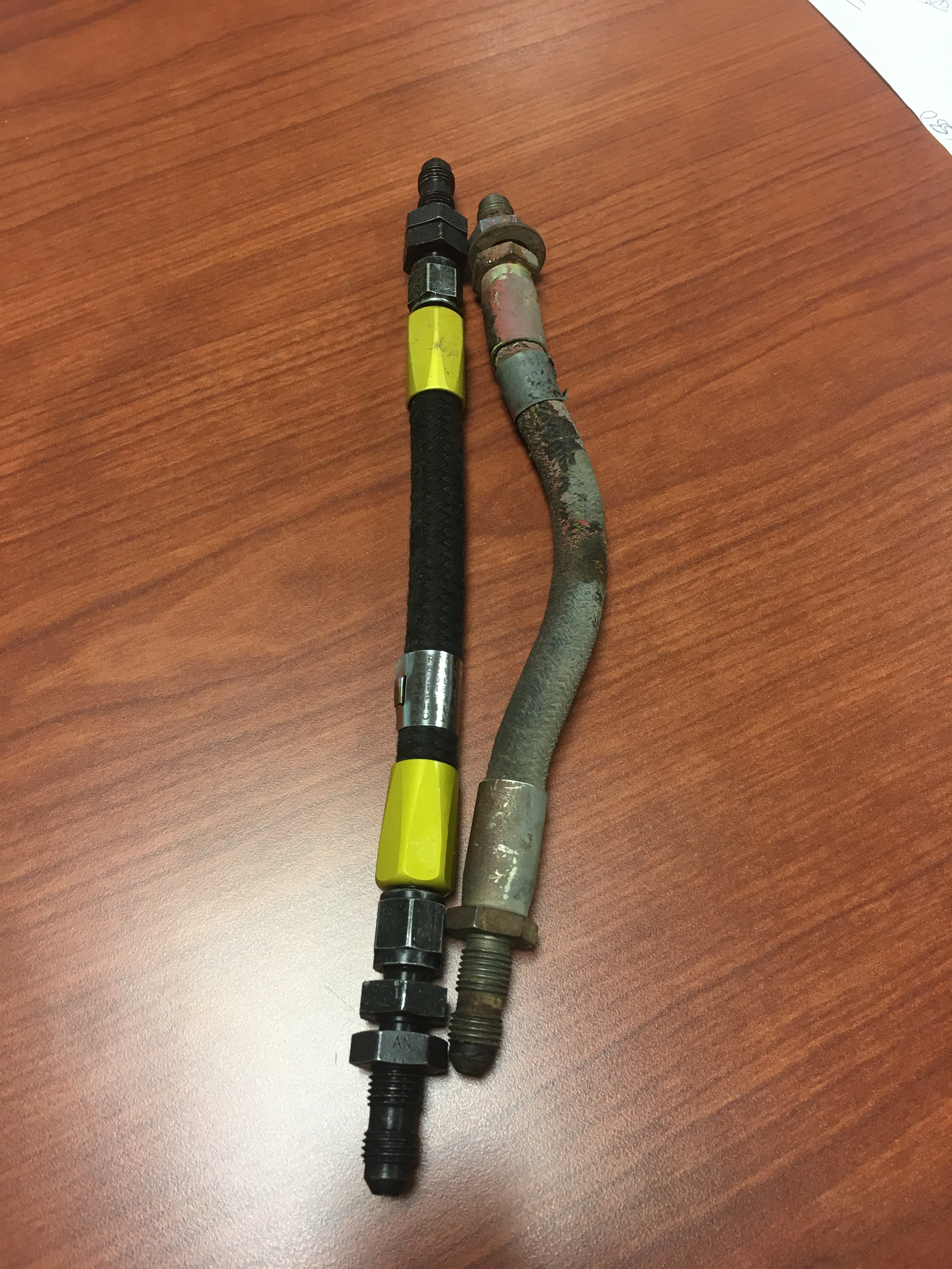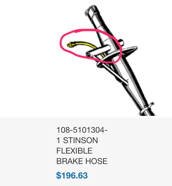 The original brake lines were leaking and needed to be replaced. Cost for two new hoses from Univair was $392.00. I used a local shop that makes them and are certified by the FAA. Cost: $60 for the pair.