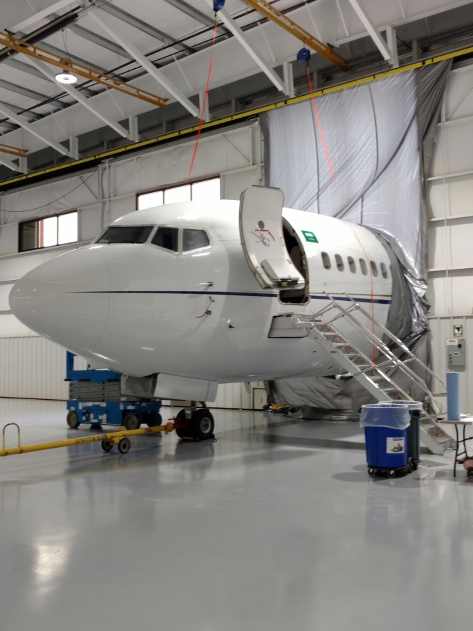 The last one is taken after fitting a Boeing 737 Business Jet into the hangar for some work in the nose. It won’t entirely fit in our hangar as the tail is too big.