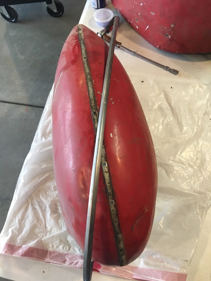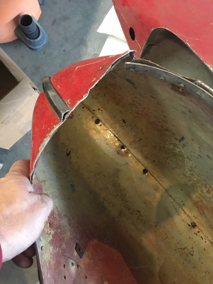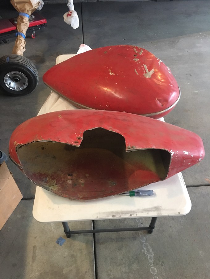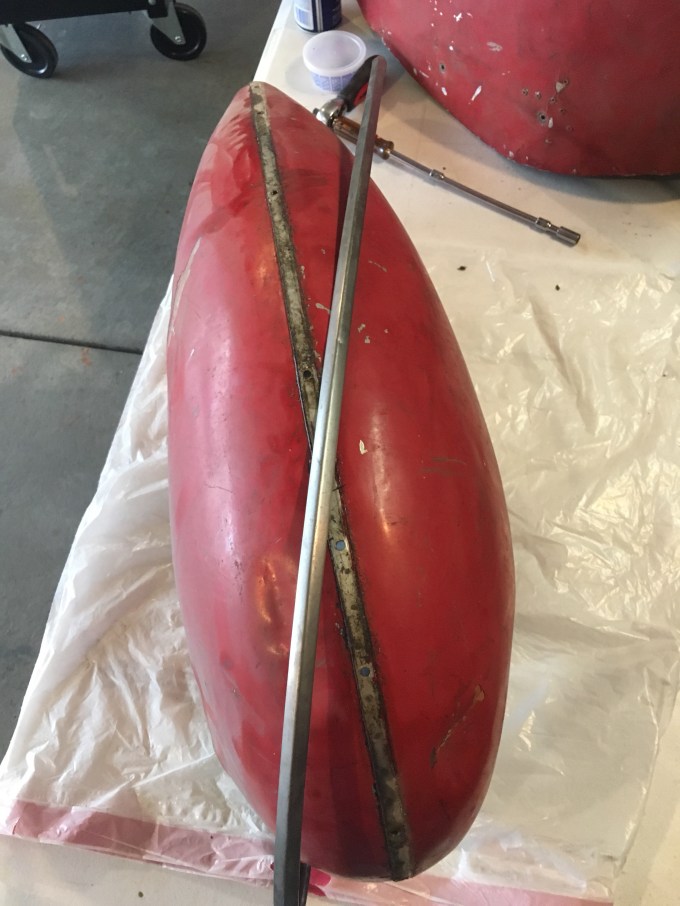 Working on cleaning up the wheel pants. They are well used with lots of dents and cracks. But with a little work I think they will be fine.