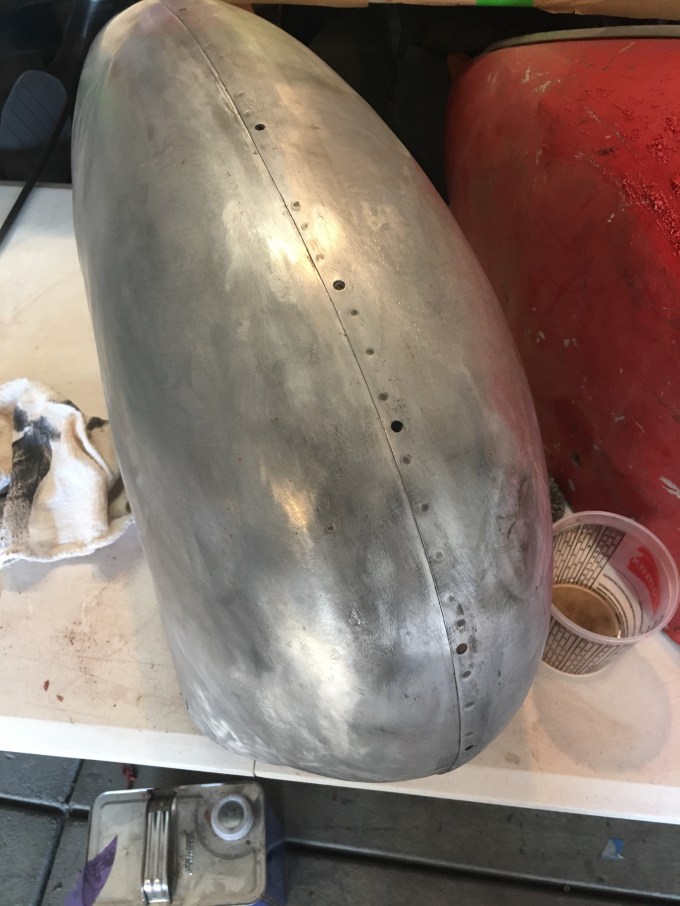 I popped out the major dents after getting the pilot’s side paint removed. Doesn’t look too terrible. There will be some repairs required on the underside and a few rivets replaced.