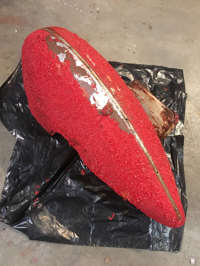 A second coat of paint remover on the second wheel pant. This paint is tough.