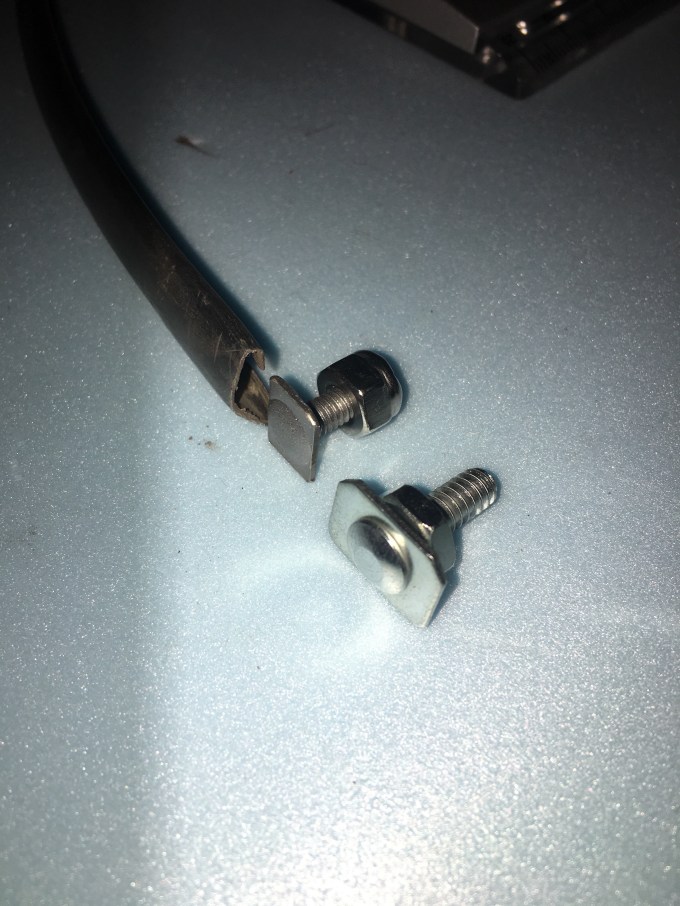 Top photo shows three of the trim hardware pieces installed in the trim plus the old and new ones.