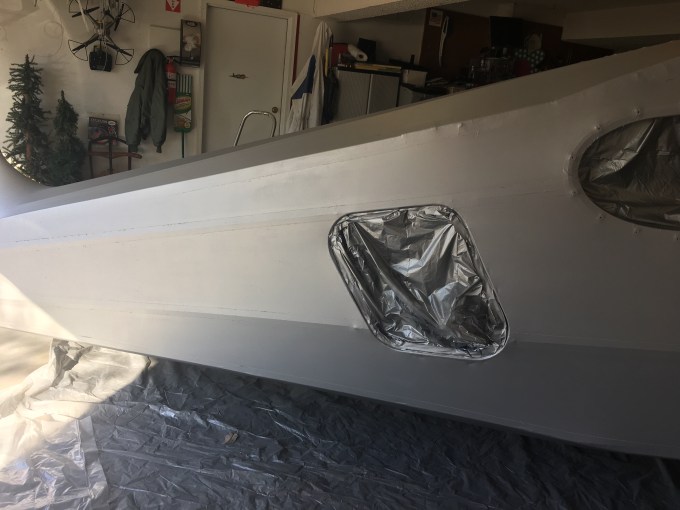 Polishing the door before temp installation. The fabric may not be as glossy as the aluminum door so you don’t want to over do it, otherwise it will stand out against the rest of the airplane.