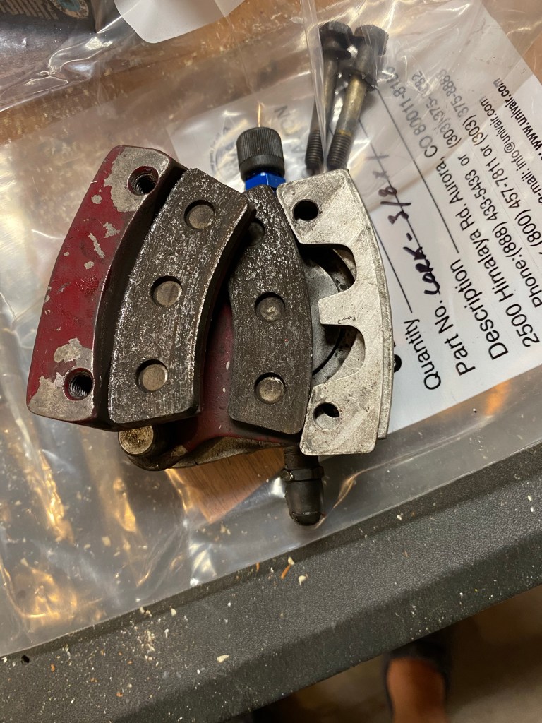 Posted on October 16, 2020October 18, 2020 Uncategorized Brakes Cleveland Brake work over several days. Prior to cleaning Old pads Old pads Pad mount plates cleaned and ready for new pads Some things are best left to the experts. Installing new pads with the rivet gun New pads installed New O-rings New pads, hardware, O-rings. Share this: Click to share on Facebook (Opens in new window) Facebook More Click to share on X (Opens in new window) X Like Loading...
