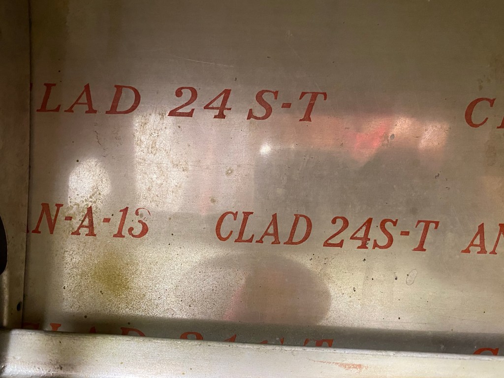 They are material specifications for the aluminum used during the construction of the Stinson. Clad refers to Alclad while the -13 designation refers to aluminum with Alclad. Change that -13 to -12 and you won’t get the Alclad version. Alclad is a corrosion resistant aluminum, first used in the U.S. Navy’s ZMC-2 airship back in the 1920’s.