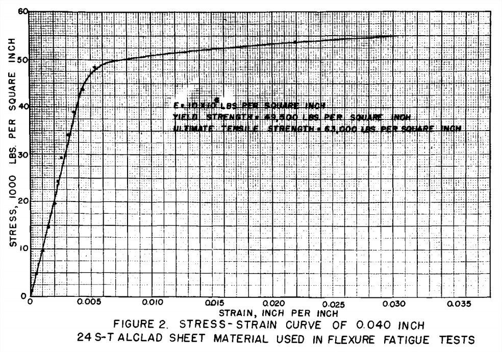 The nominal chemical composition of 24S-T is 4.4% copper, 1.5% magnesium, 0.6% manganese, and the balance aluminum. (Compare that to its replacement composition, 2024T below.) The Alclad 24S-T, which is used on the Stinson, has an additional surface coating of pure aluminum about 10% of the total thickness of the sheet or 5% on each surface.