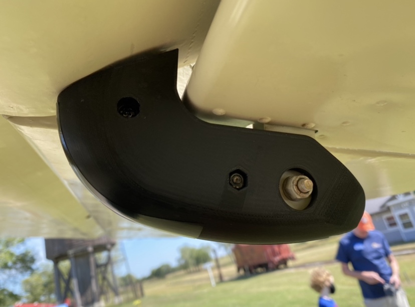 These are hard to find so I designed and printed a few. They came out pretty nice I think. Plastic is ABS so they’ll withstand the temps and I printed a set in flex filament. They came out nice. They are there to keep you from scalping yourself when you walk under the wing.