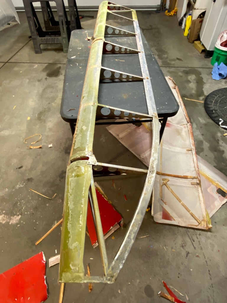 Posted on January 9, 2021 Uncategorized Left aileron continued……… Before Old fabric removed Primer Fabric and last iron setting Poly fiber applied Share this: Click to share on Facebook (Opens in new window) Facebook More Click to share on X (Opens in new window) X Like Loading...