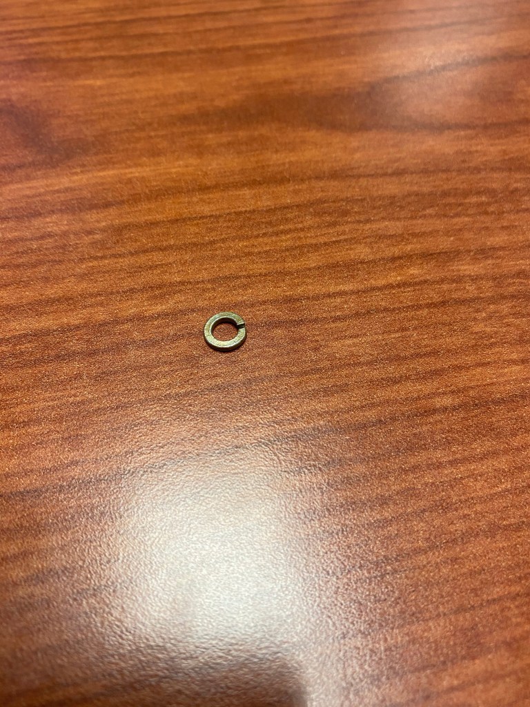 I held up the fuel tank installation because of a $.02 washer I didn’t have. I could have used the original washer, but in the interest of replacing as much of the original hardware as possible, I ordered the $.02 washer and received it today. So now I can finish up the tank installation. Yes, I ordered several parts, not just the one washer.