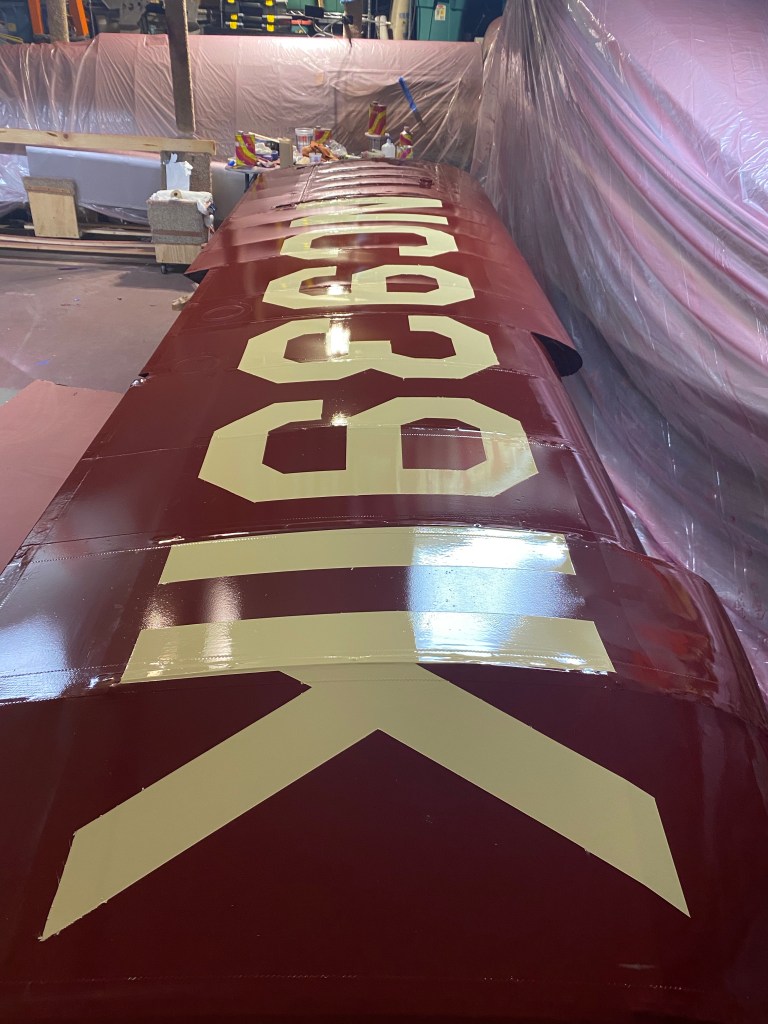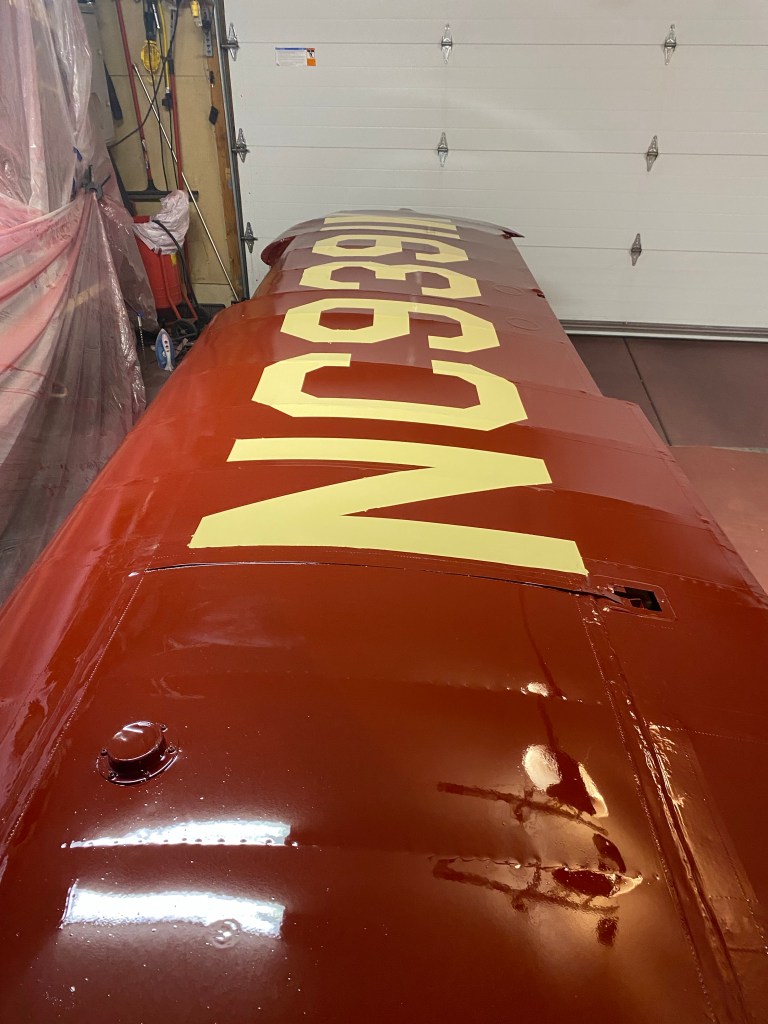 Putting down the stencil on a non flat surface and trying to keep it straight was not easy. I also wanted to keep the registration number off the fuel tank. I have some edges to clean up, but it doesn’t look too bad.