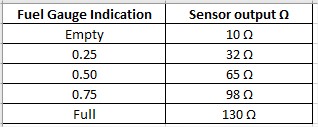 The Stinson fuel sending unit mounts on the bottom of the fuel tank while the Ford sending unit mounts on the top of the tank. So full fuel in the Ford means low resistance from the sending unit .