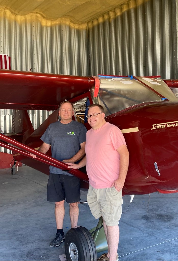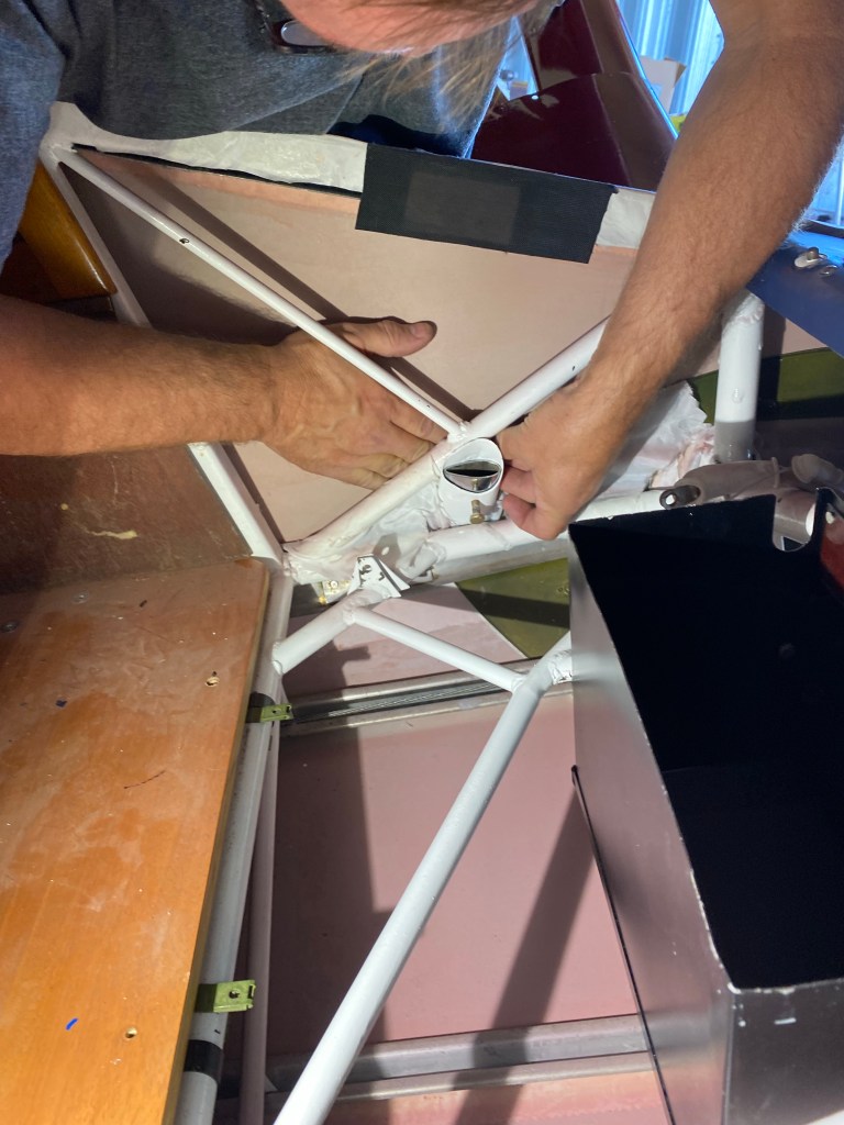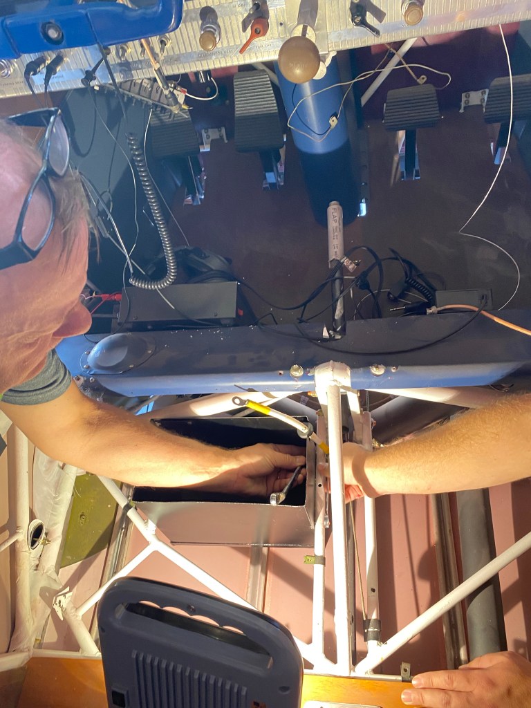 Posted on September 11, 2022 Uncategorized Sunday We had some extra help at the hangar today. Aaron came with us after meeting him for lunch. Aaron and me Adding the battery grounding wire to the frame. Finishing up the step attachment. Control wheel label. Share this: Click to share on Facebook (Opens in new window) Facebook More Click to share on X (Opens in new window) X Like Loading...