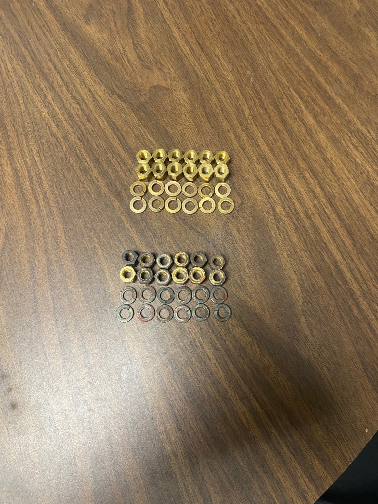 Posted on November 28, 2023November 28, 2023 Uncategorized Exhaust Hardware MS35338-45 washers and 22022 brass exhaust nuts (SA22022 will work, too). New on top, old on the bottom. All the lock washers were flat and lost their tension. Share this: Click to share on Facebook (Opens in new window) Facebook More Click to share on X (Opens in new window) X Like Loading...