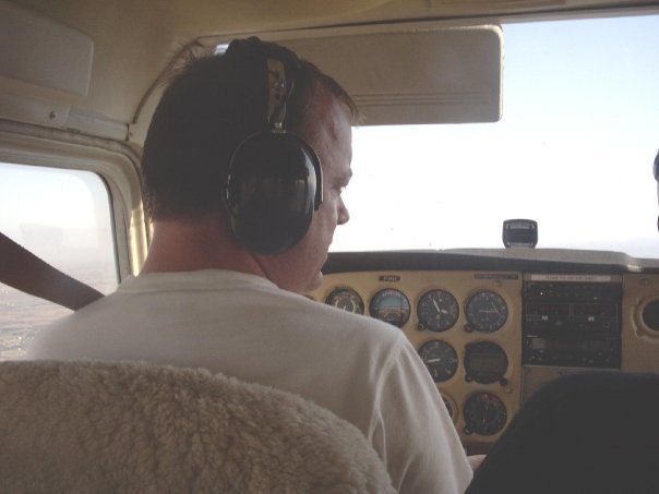 Greg and I in the Cessna 152 somewhere between Beatrice and Nebraska City, Nebraska.
