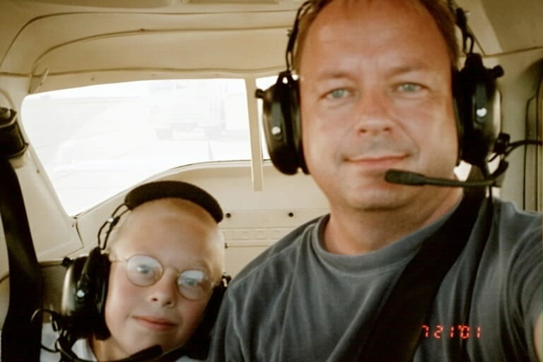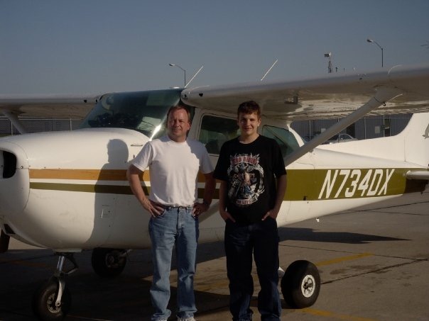 Aaron and me taking the C-152 for a trip to Iola. When we flew down for the $100 hamburger. Ate at Sonic in Iola, took the airport ‘free taxi’ to town.