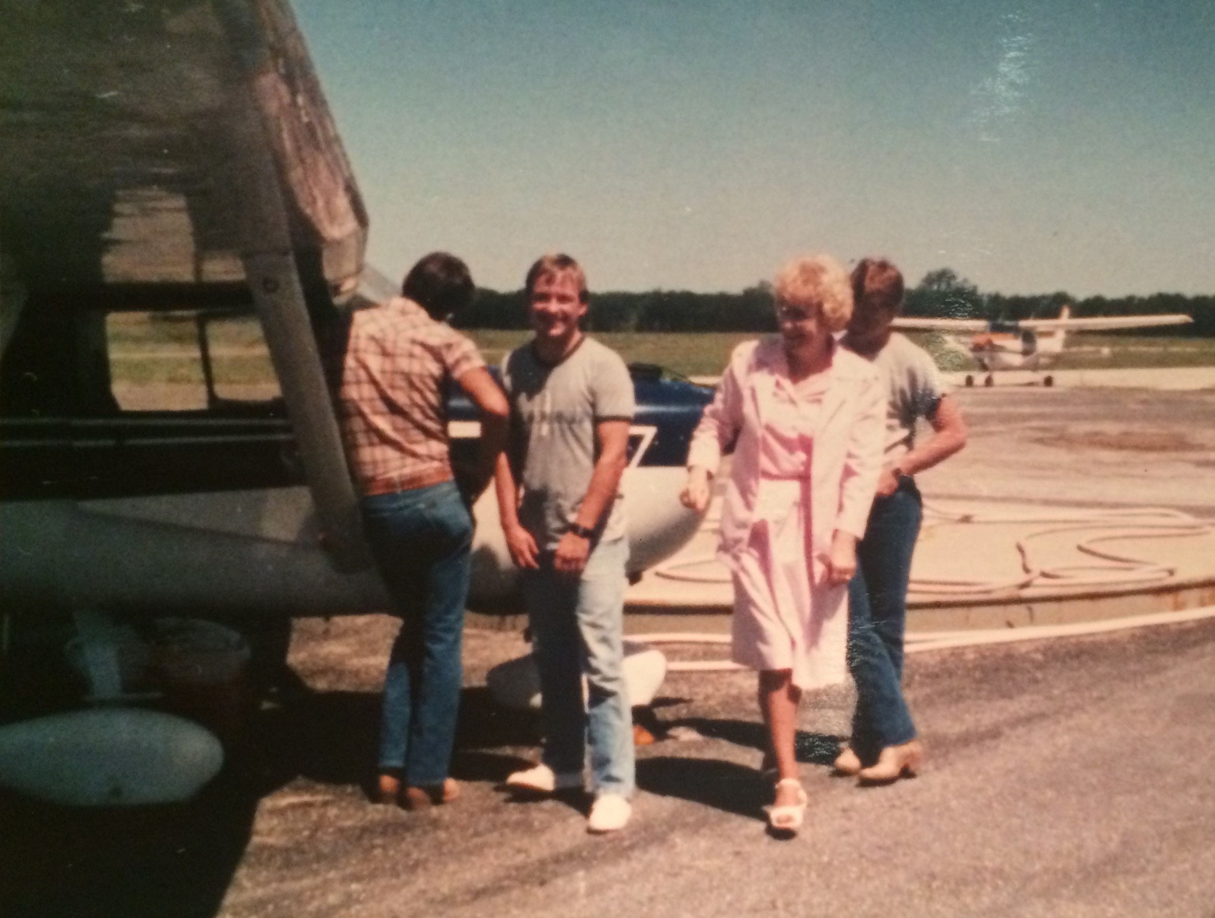 I flew a C-150 from Wichita to Iola to see the family (1986). Left to right it’s Chris, me, mom, and Marvin. This photo was taken by Don Sigg.