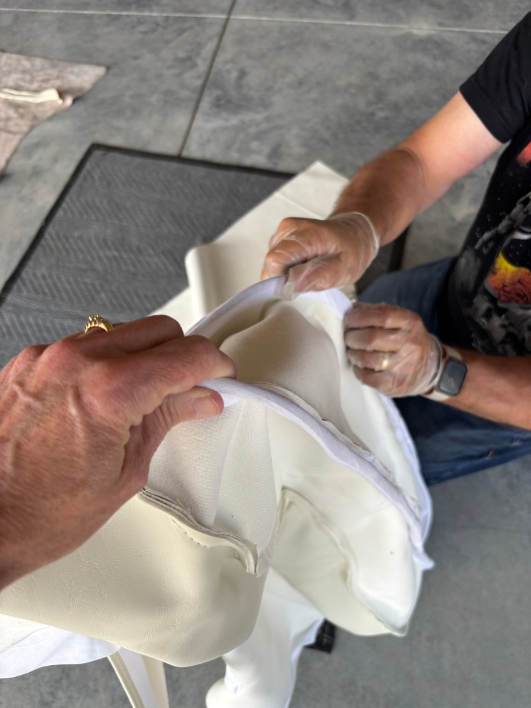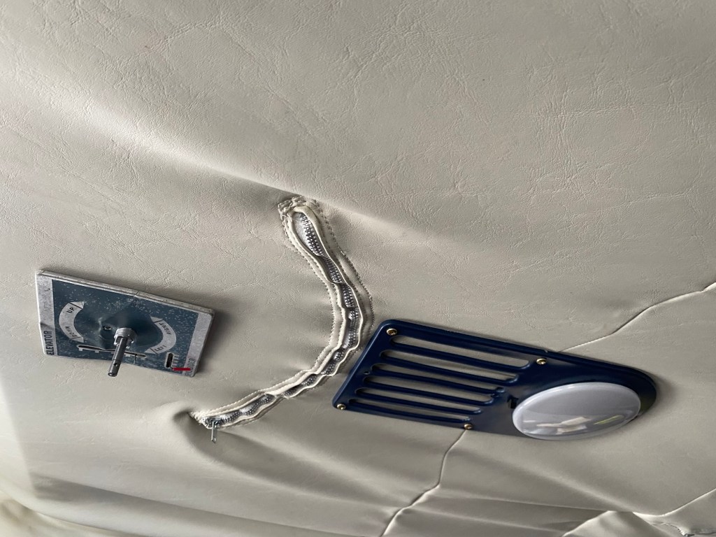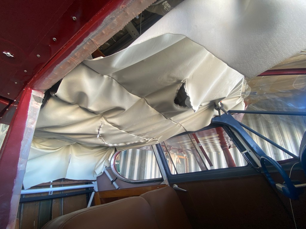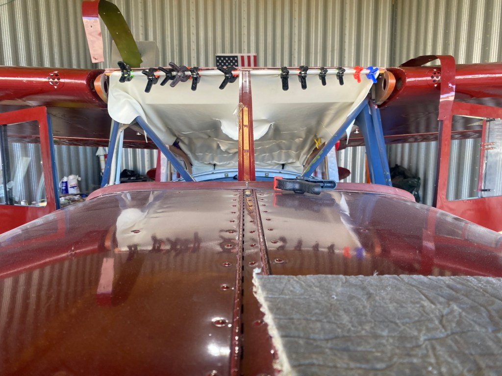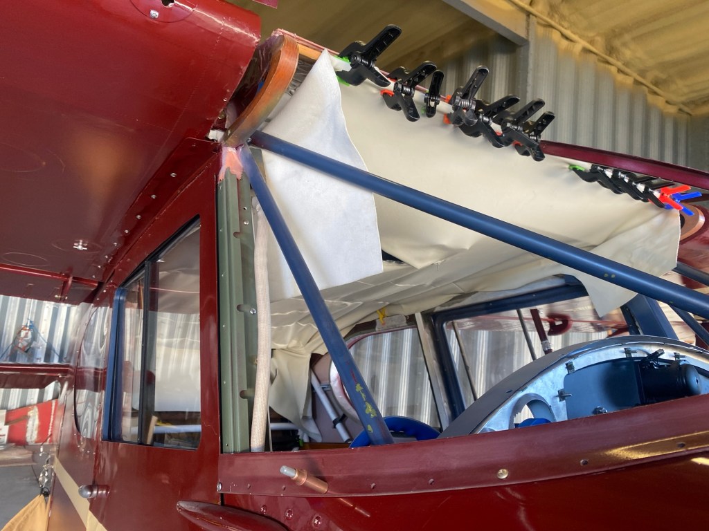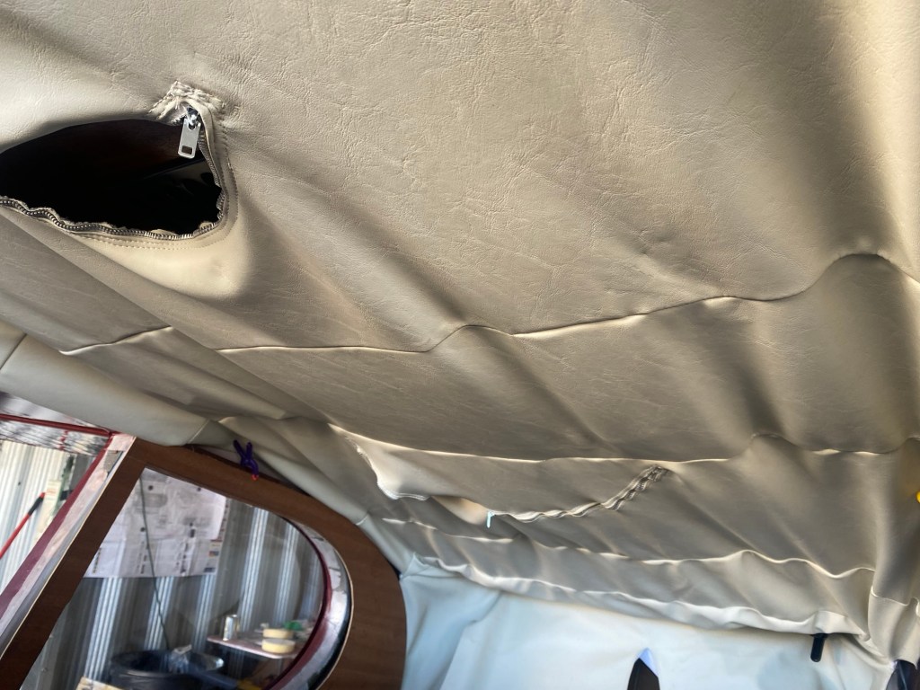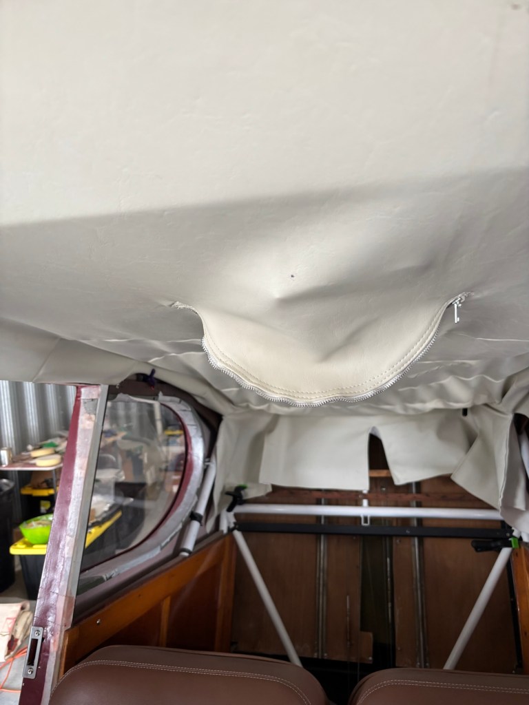 Working on the headliner. I made new ribs for it as I couldn’t get the originals to fit well. I also took out the front windshields to make it easier to install. We’re not finished yet, but getting closer.