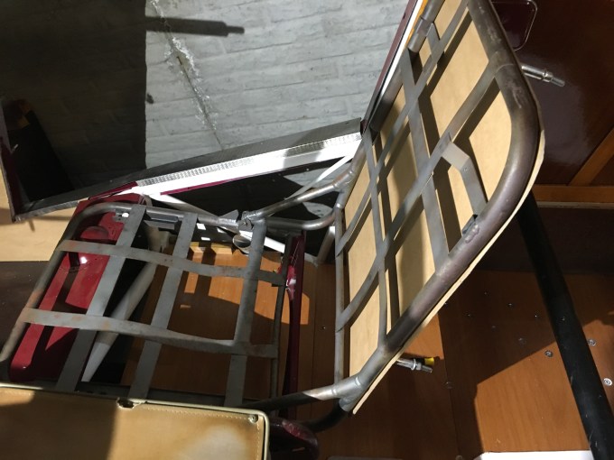 Interior Photos Before and after photos of the seats. After Rear seats are sling seats. i have one for a pattern. most of the side panels are covered in carpet. An example of how the doors look. seat backs are around 18″ by 18″ Share this: Click to share on Facebook (Opens in new window) Facebook More Click to share on X (Opens in new window) X Like Loading...