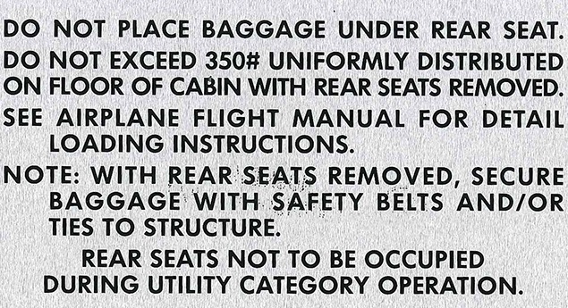 The following placards are required for a 1947 Stinson 108-2 Landplane in accordance with the type certificate data sheet.